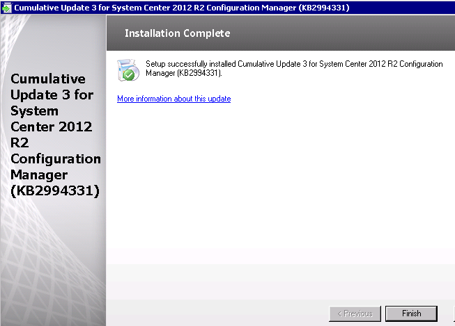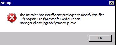 While attempting to update to Cumulative Update 3 I received the following error. After reviewing the actual log (which was more cryptic than the pop up window) I wasn’t able to see what the specific issue was. I validated the setup account has explicit permission to ccmsetup.exe, re-applied the security permissions, rebooted, validate there were no open external connections to the server, but still no luck.