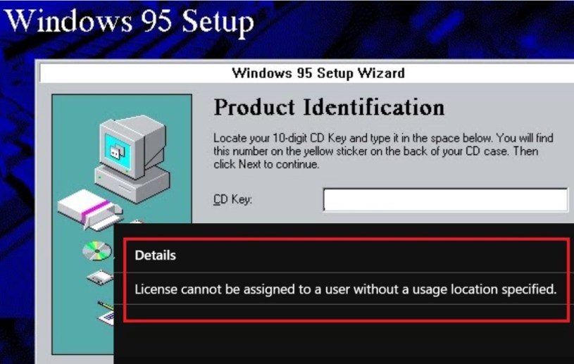 When attempting to license a user with EMS in Azure AD I hit an error “License cannot be assigned to a user without a usage location specified” when I initiated the license assignment. Googling didn’t initially return a resolution, so here is whats up.