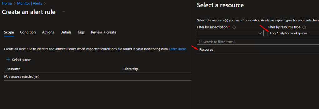 Step 1 – Create Azure Monitor Alert / Log Analytics Kusto query